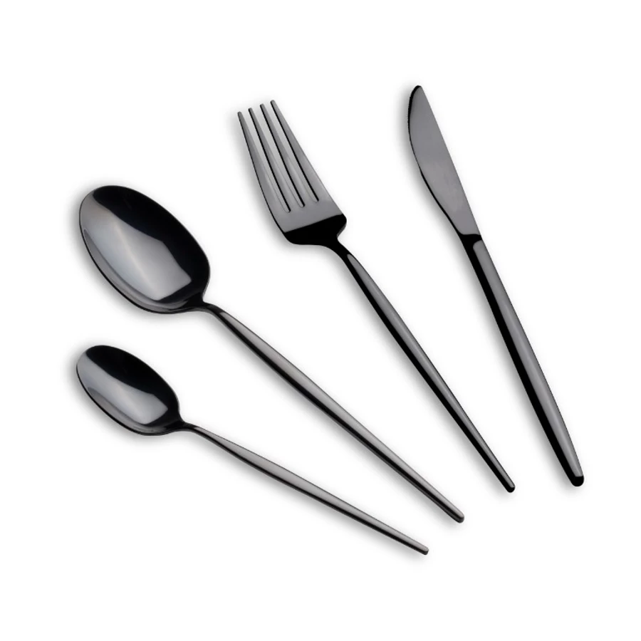 A fekete PVD bevonat különleges megjelenést kölcsönöz az evőeszközöknek, amelyet a tükör fényű felület még inkább kiemel. Ez a szín és stílus bármilyen asztali dekorációval harmonizál.